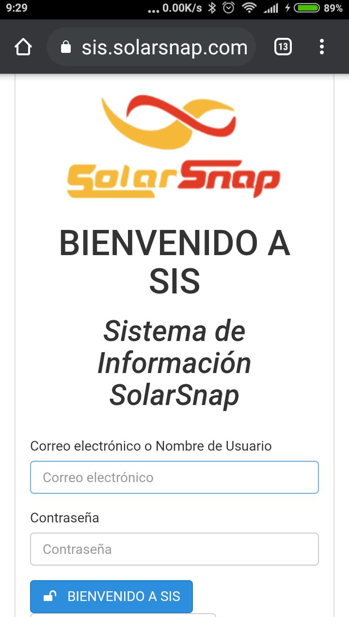 https://sis.solarsnap.com in any web browser and login to the application. SIS is accessible using Android, Windows, iOS, MacOS, Linux or virtually any operating system with a web browser. SIS works just as well with mobile devices as it does with desktop and laptop systems due to the responsive design elements employed. SIS utilizes mobile friendly, feature rich HTML5 technology now fully integrated into all mobile and desktop devices. Currently, SIS is user configurable to work in either Spanish or English, but other languages shall be added in the future as we expand our organization out of the Americas.
